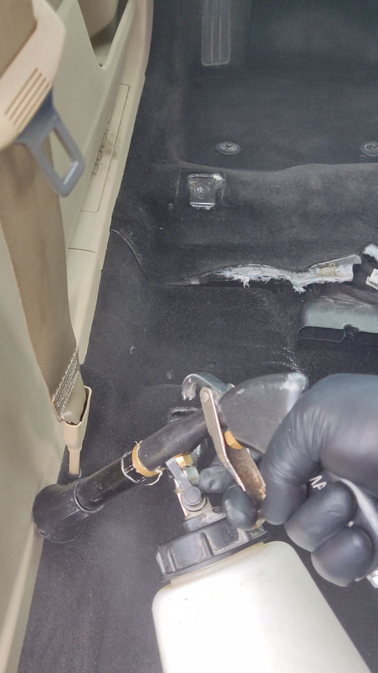 атмосферному тиску - суміш хімічного складу + води + стислого повітря - вибиває всі забруднення з обивки, при цьому поверхня залишається